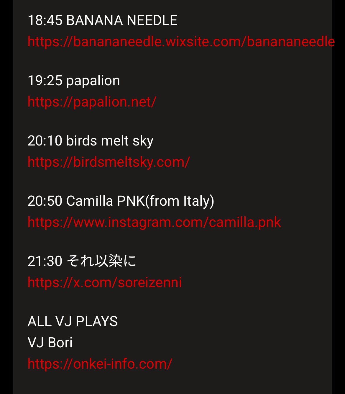 act : Camilla PNK BANANA NEEDLE birds melt sky *20:10〜出演 papalion それ以染に